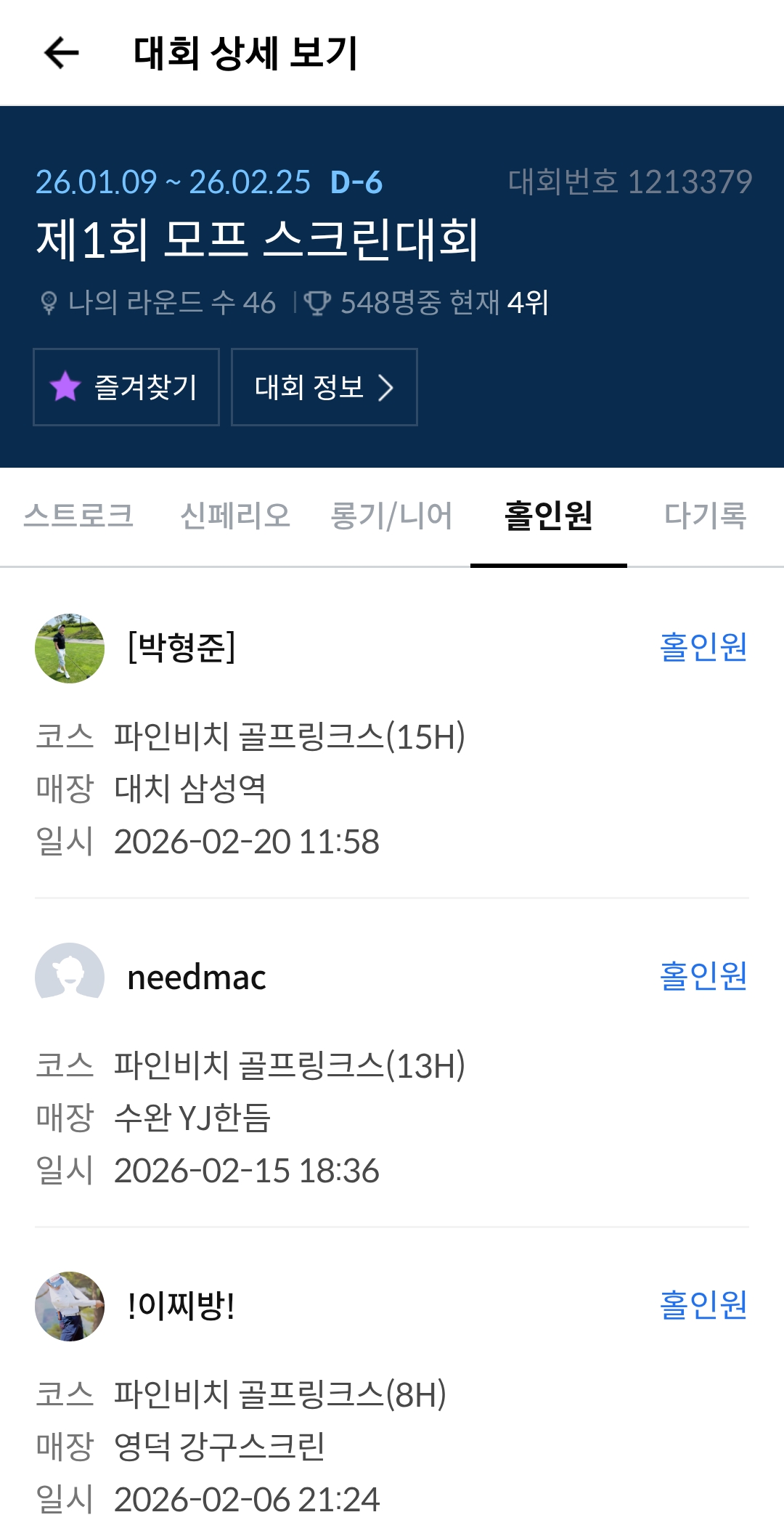 15번 홀인원 나왔네요