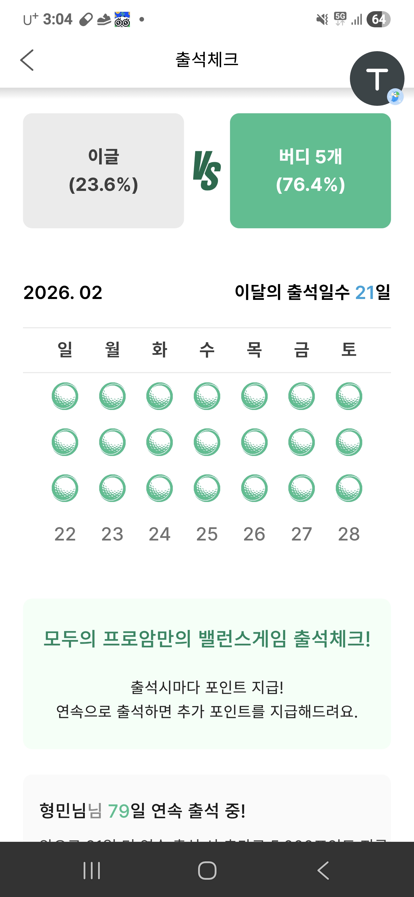 버디가 최고 이글 한개와 버디 5개 산수로도 버디 ㅎㅎ이글패 인증서 사양하겠습니다.