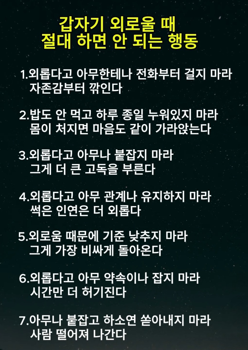 갑자기 외로울 때 절때 하면 안되는 행동