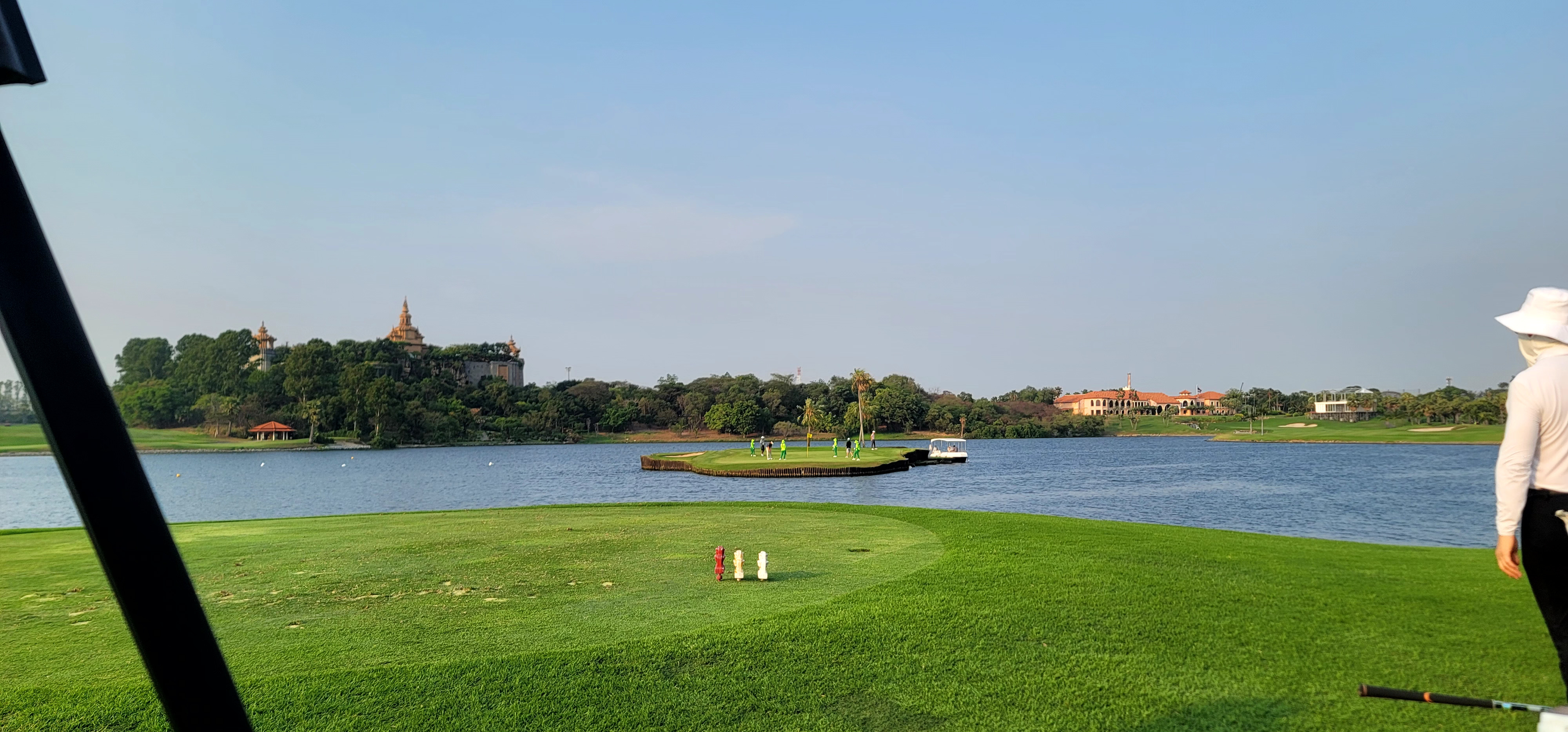대회준비때문에 이곳저곳에 카메라부스 설치 작업중입니다 제일 중요한건 페어웨이 관리때문에 카트가 페어웨이에 들어갈수가 없어요 ㅠㅠ 아시는분은 아시겠지만..보통카트가 그린주변빼고는 다들어갑니다... 더 많은 사진은 내일 찍어서 올리겠습니다 두번째는 시그니처홀인 아일랜드 홀..잠깐이지만 배를 타야 들어갈수 있답니다 ^^ 대회때는 통체로 교체한다고 합니다 늦었으니 푹 쉬세요 ~~