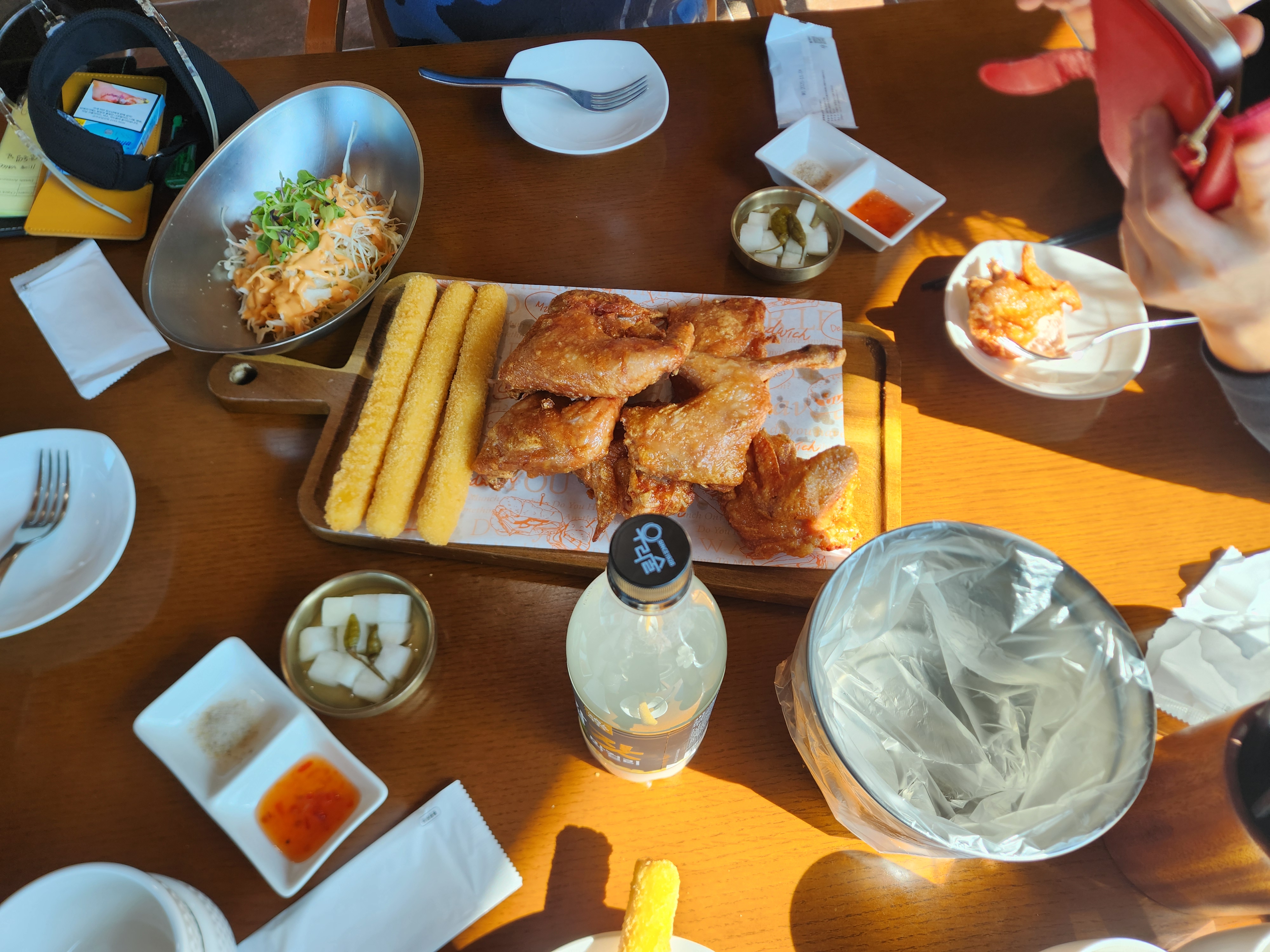 날씨 넘 조아조아~~^^ 더워서 땀날정도 치킨에 막걸리 한잔^^