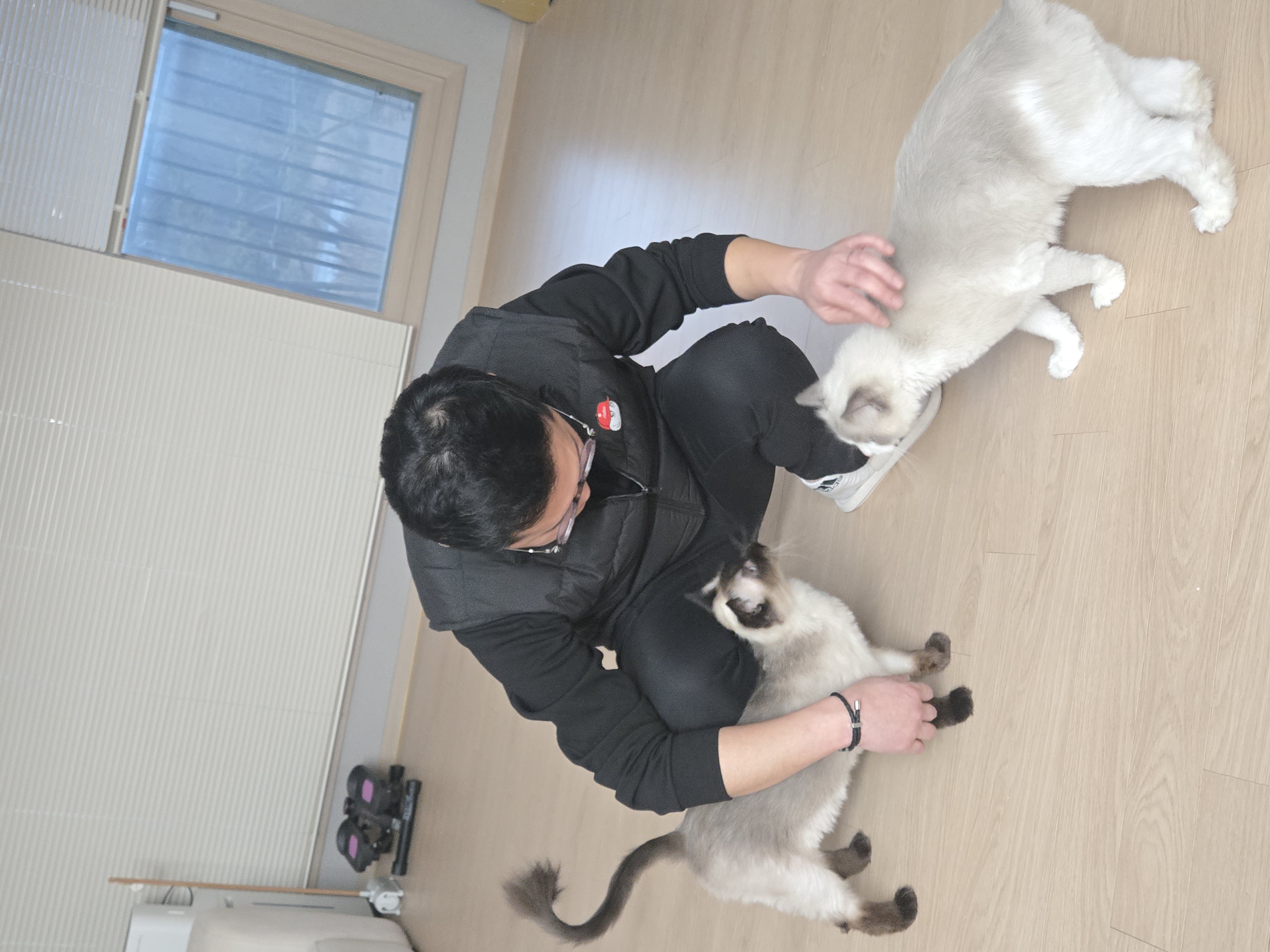 어제 영남방 회원분들과의 스크린 모임에서는 제 허리부상땀시 치고싶은 공을 못쳐서 참 아쉬웠지만 그간 소원하던 했쩨님의 사랑스런 두냥이,초코와 구름이와의 짧았지만 달콤한 시간을 가질 수 있어서 행복했습니다. 자고있었던지 잠깐 어리둥절~하다가 낯선 제가 왔는데도 다가와서 반갑게 몸도 비벼주고 눈도 마주쳐주니 더더욱 사랑스러웠습니다. 저도 덩달아 넘흐넘흐 기분이 좋아 맘껏 쓰다듬고 사랑의 레이저를 발사하였지요 ㅋㅋㅋ 했쩨님,쌩유~~🙆♂️😘 행아행아~~~^^