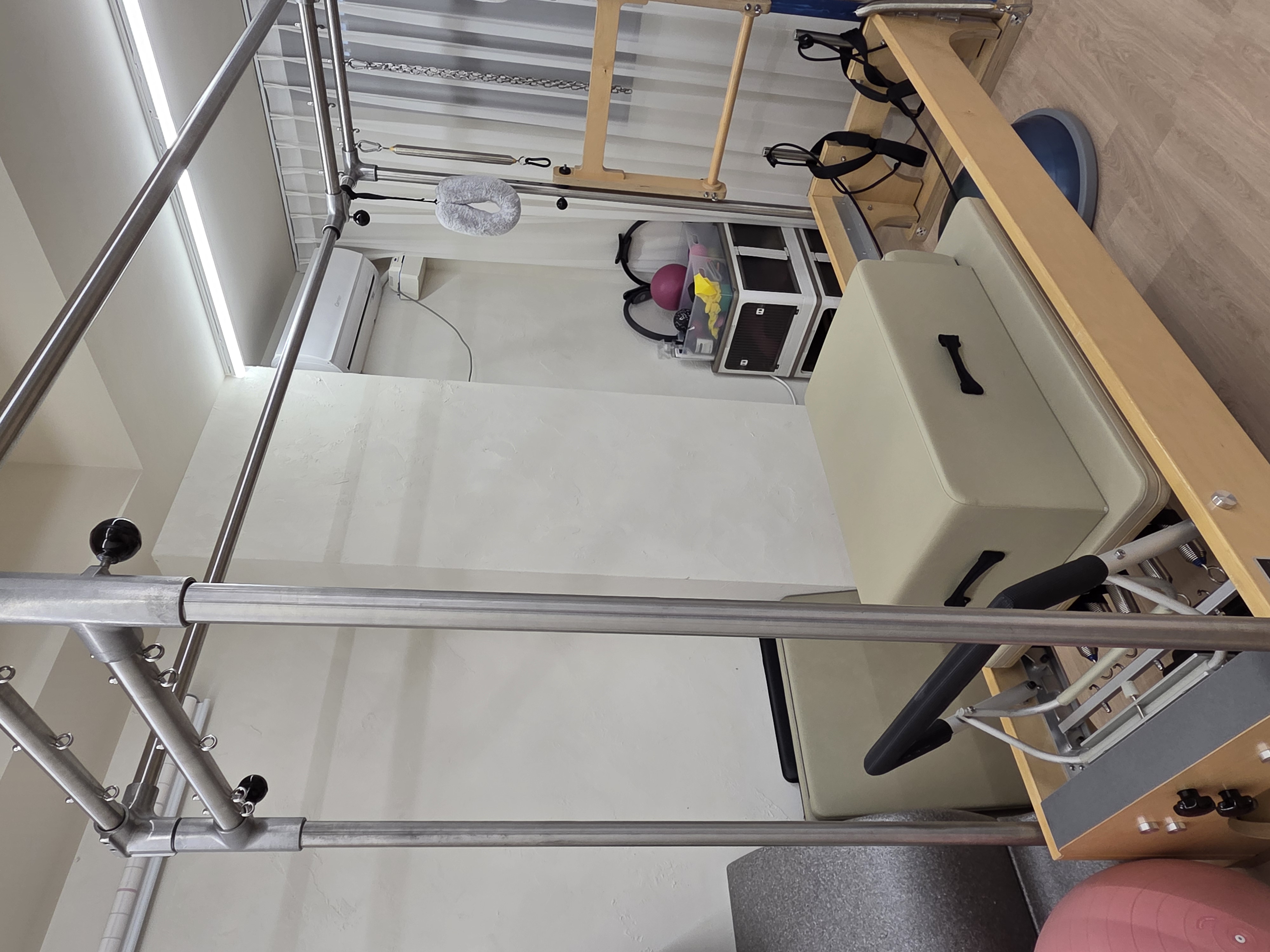 필라테스 오면 요런 기구로 운동 합니다. 자세는 엉망이라 담에