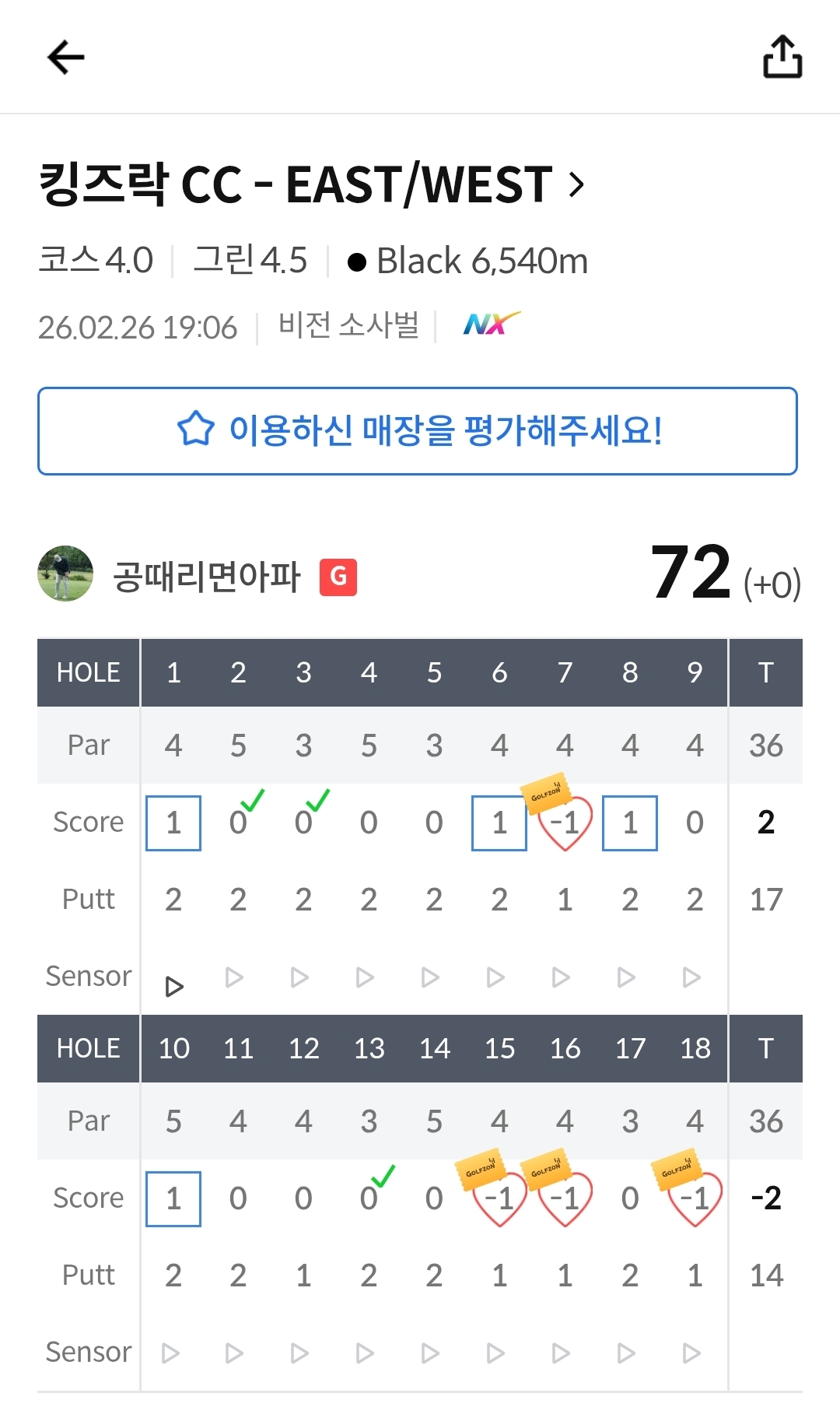 잘되되가도 힘들어가고 파3 뒷땅..ㅎㅎ멀리건 쓰게되네요ㅋ 드라이버 쎄게 안치려고해야되는데 조금더 집중필요~~