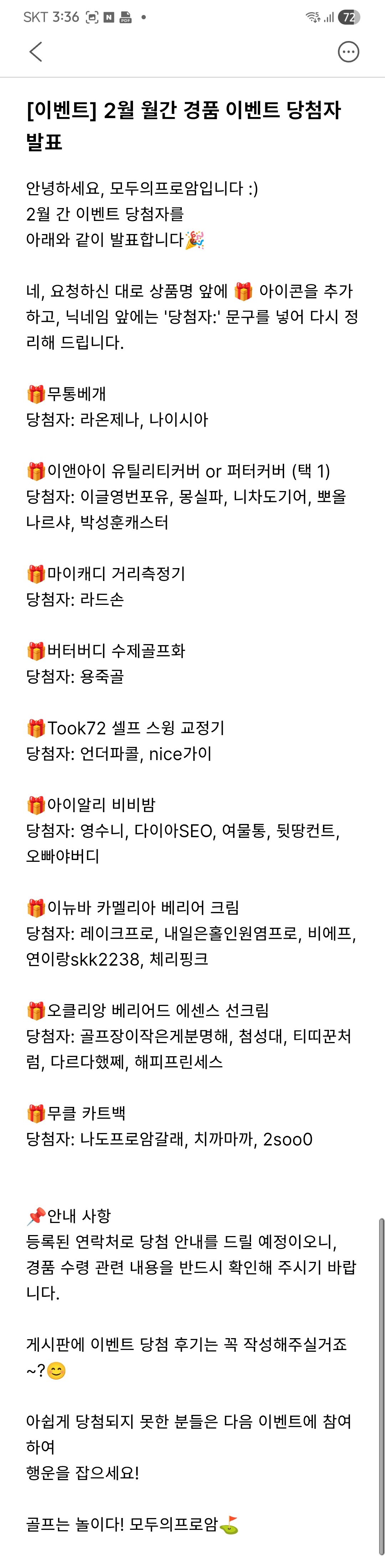 경품 이벤트 당첨 축하드려요^^