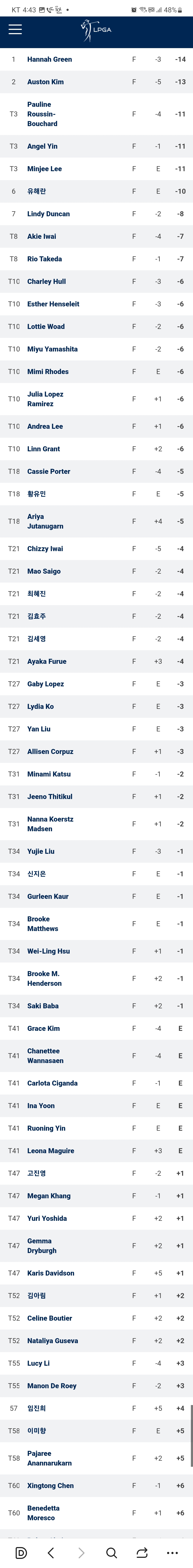 LPGA HSBC 챔피언십 최종리더보드