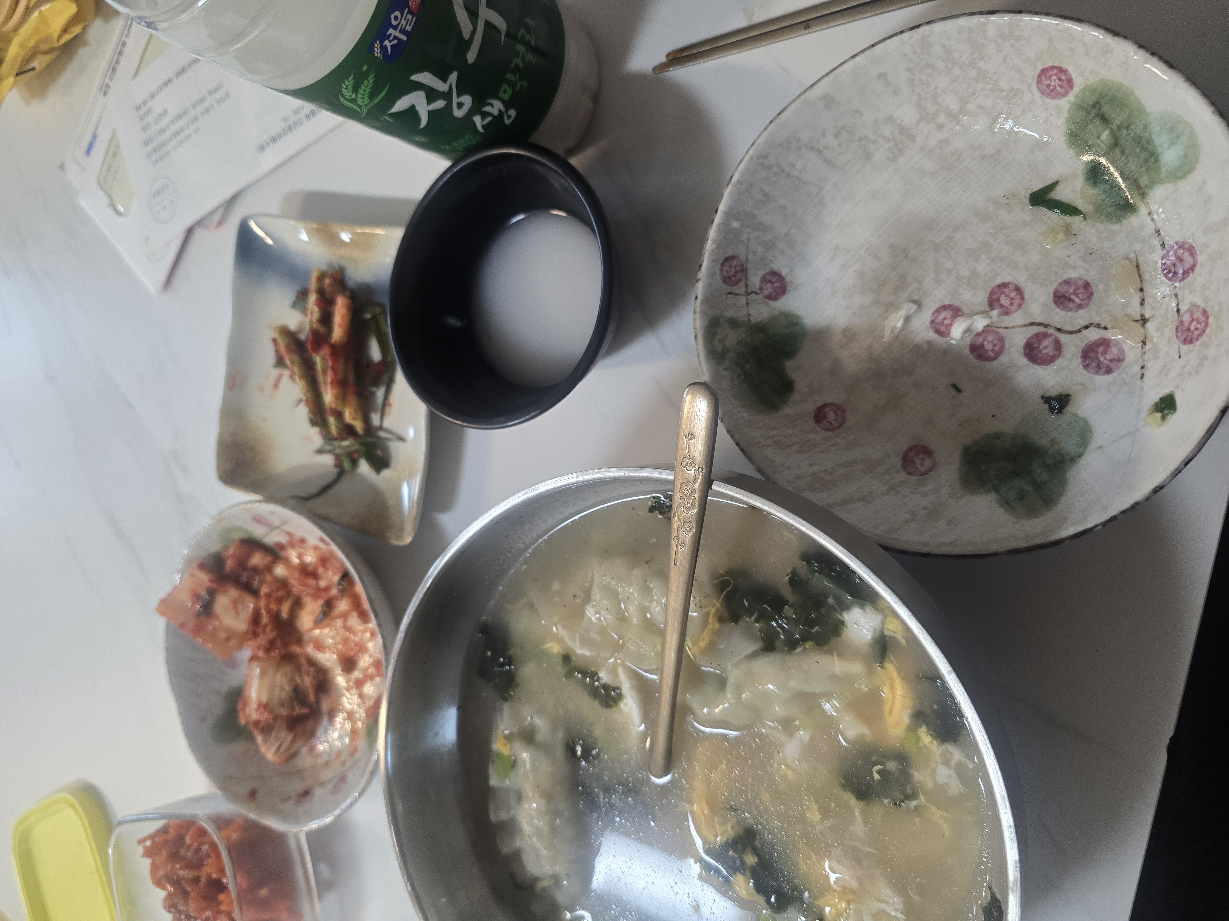 막걸리가 땡겨서 아침부터 떡만두국 김치에 한잔 합니다. 난 이런 날씨를 좋와해여... 기분좋게 한잔들 하시져..