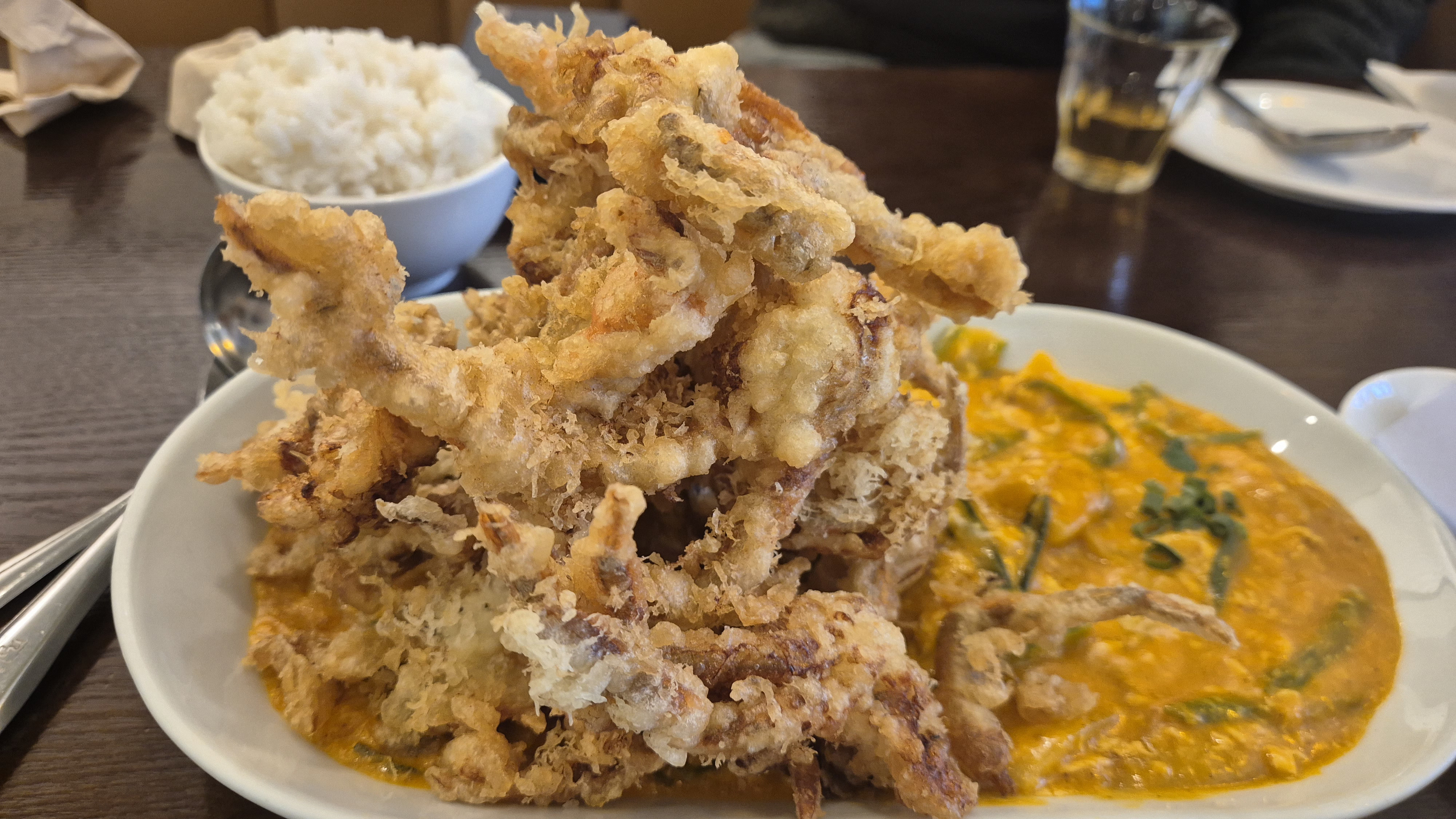 태국음식은 별로 좋아하지않는데 얇고 부드러운 게를 튀겨 카레를 얹은 '푸 팟퐁커리' 이건 맛있네요