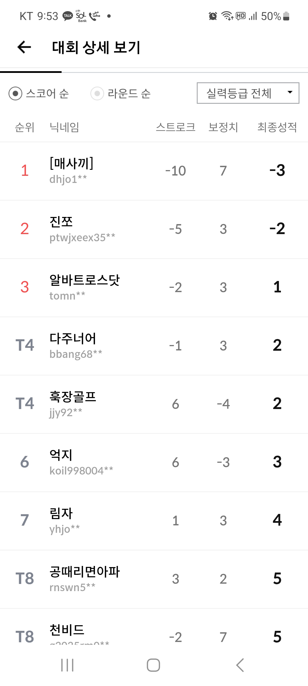 단번에 군자리CC 코스레코드를 찍네요. 그동안 군자리CC 코스레코드가 -9였는데 갈아치웠습니다. 더불어 모프대회에서도 1위...