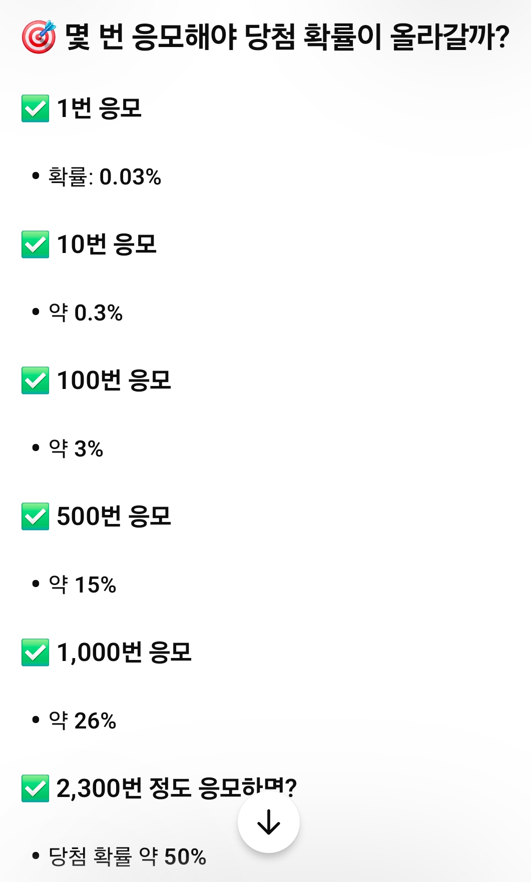 100% 는 확률상 없네여. 모두 굿럭^^