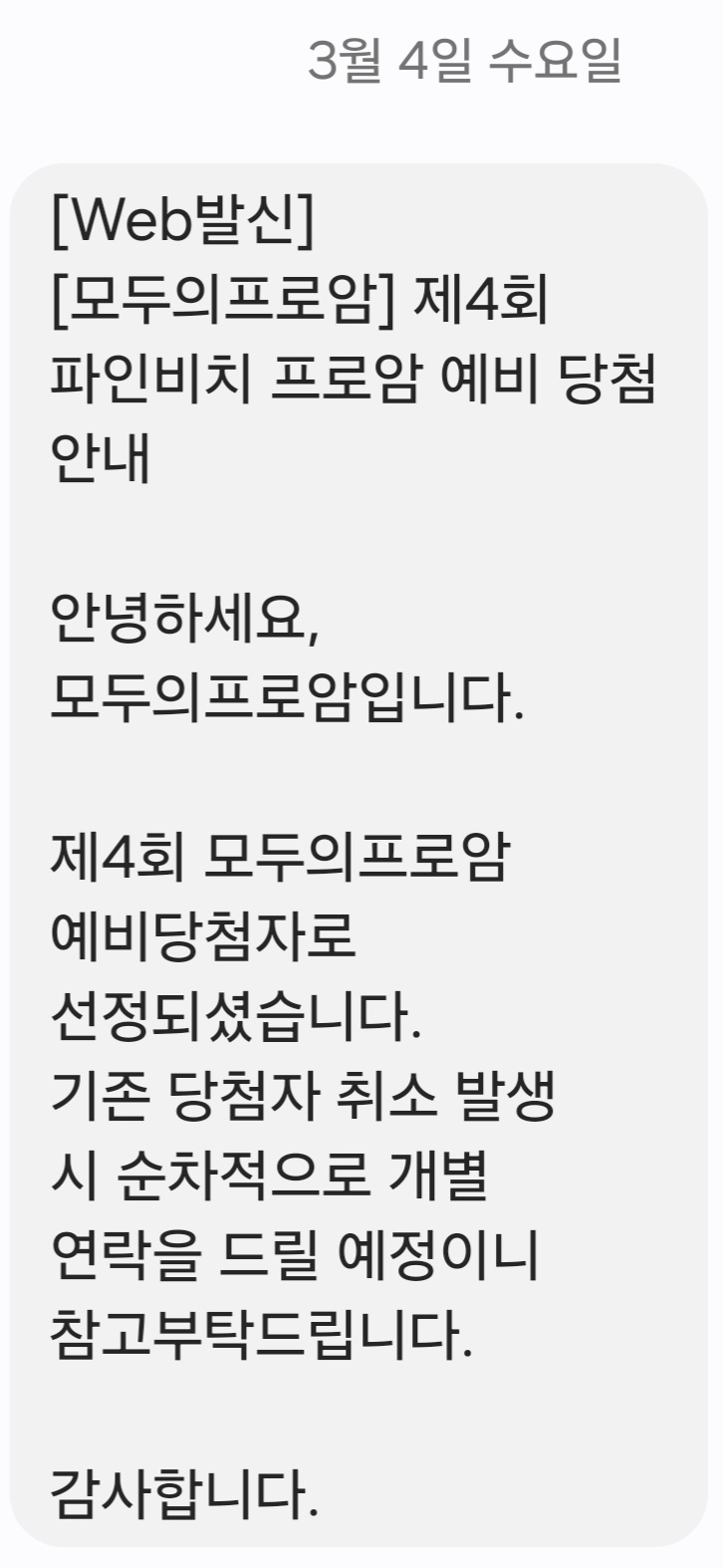 문자 발송왔네요 가려나?