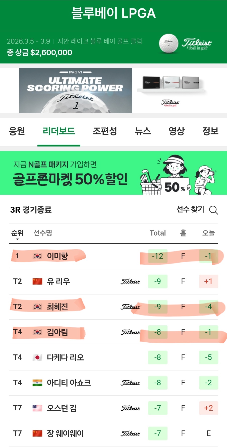 이미향선수 우승가나요?