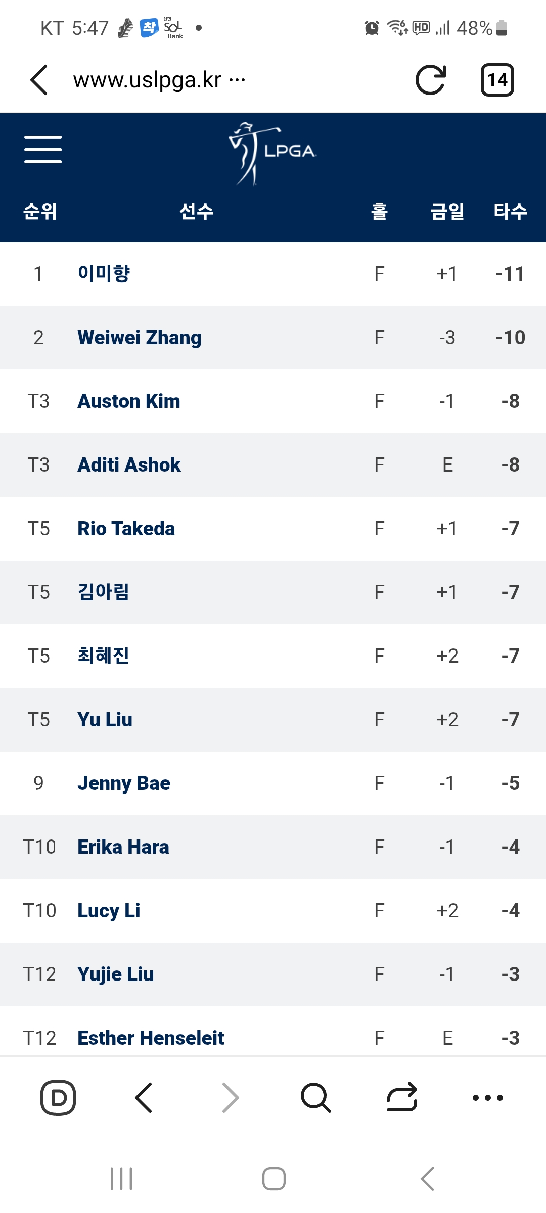 막홀 50센티 버디펏으로 우승 확정! 축하합니다. 이미향 선수..
