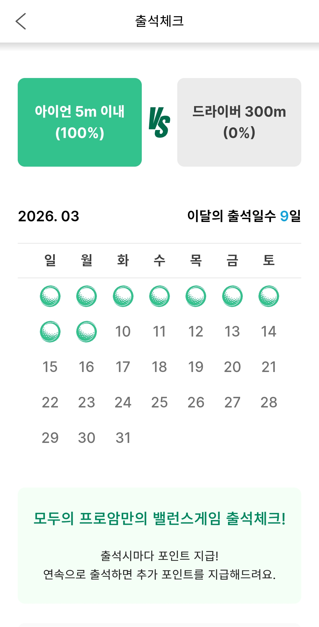 오늘의 출석 선택 100% 달성