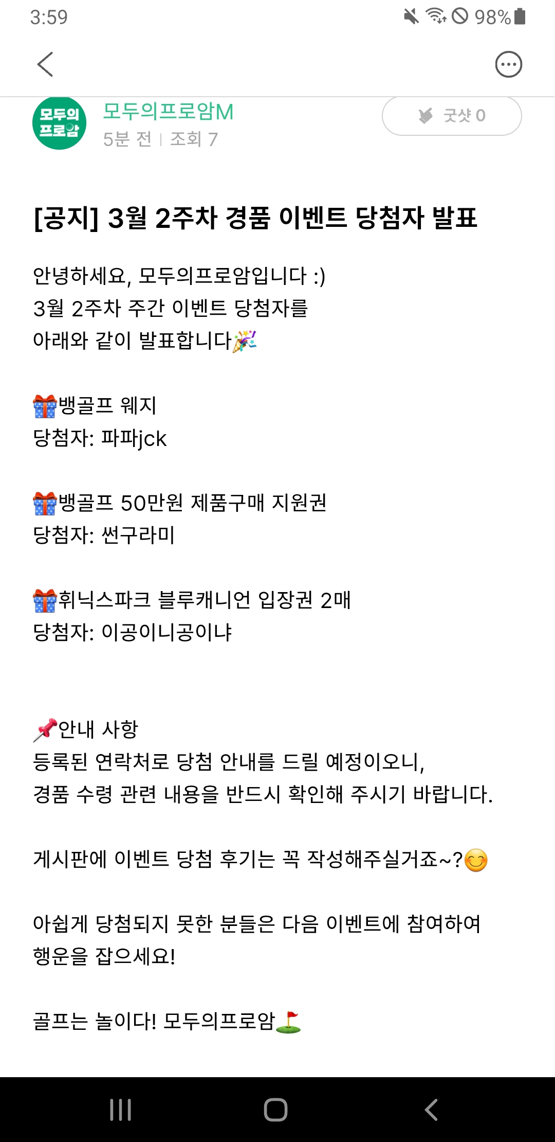 전 이번에도 꽝이네요ㅎㅎ 축하드립니다