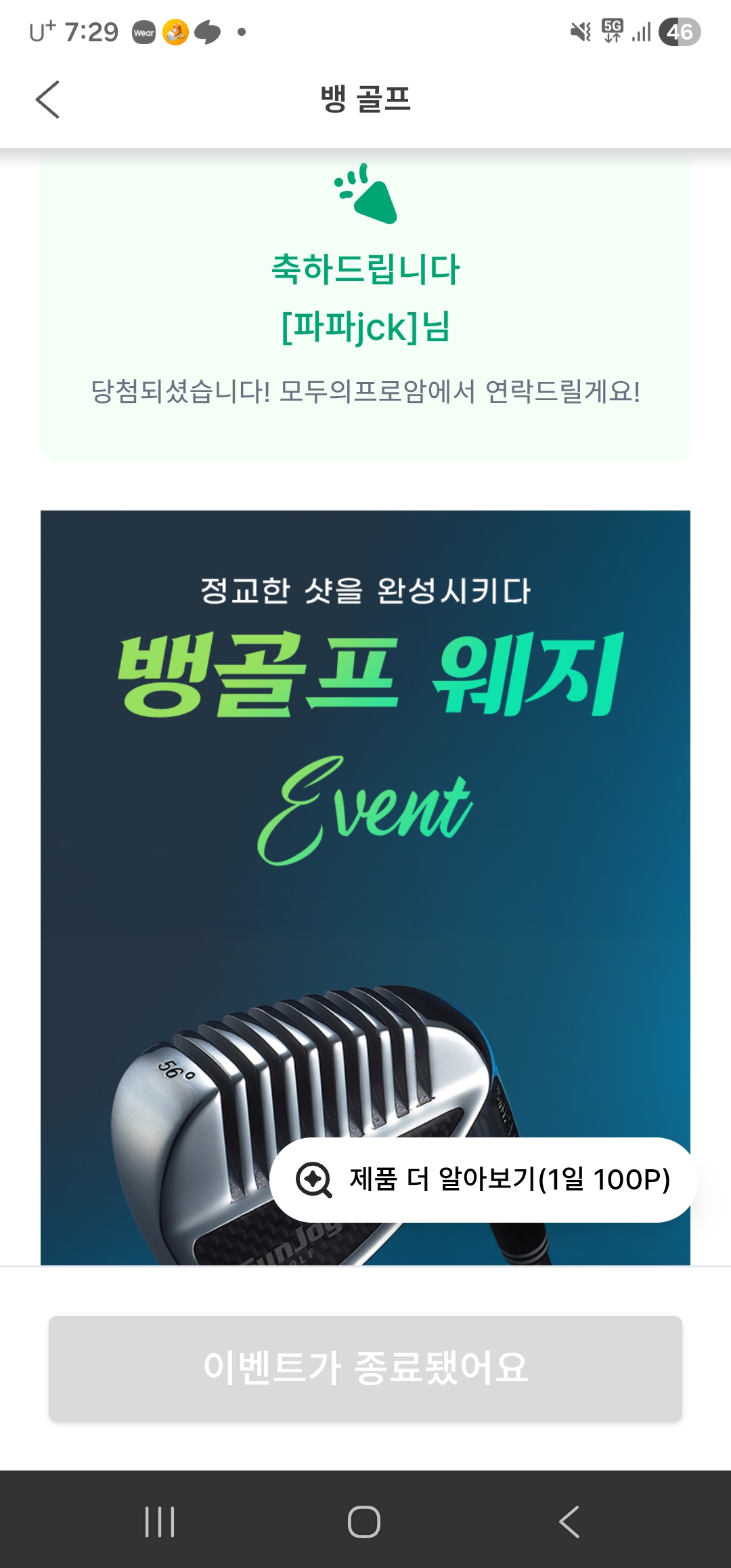 뱅골프 당첨의 행복이 저에게 넘넘감사합니다