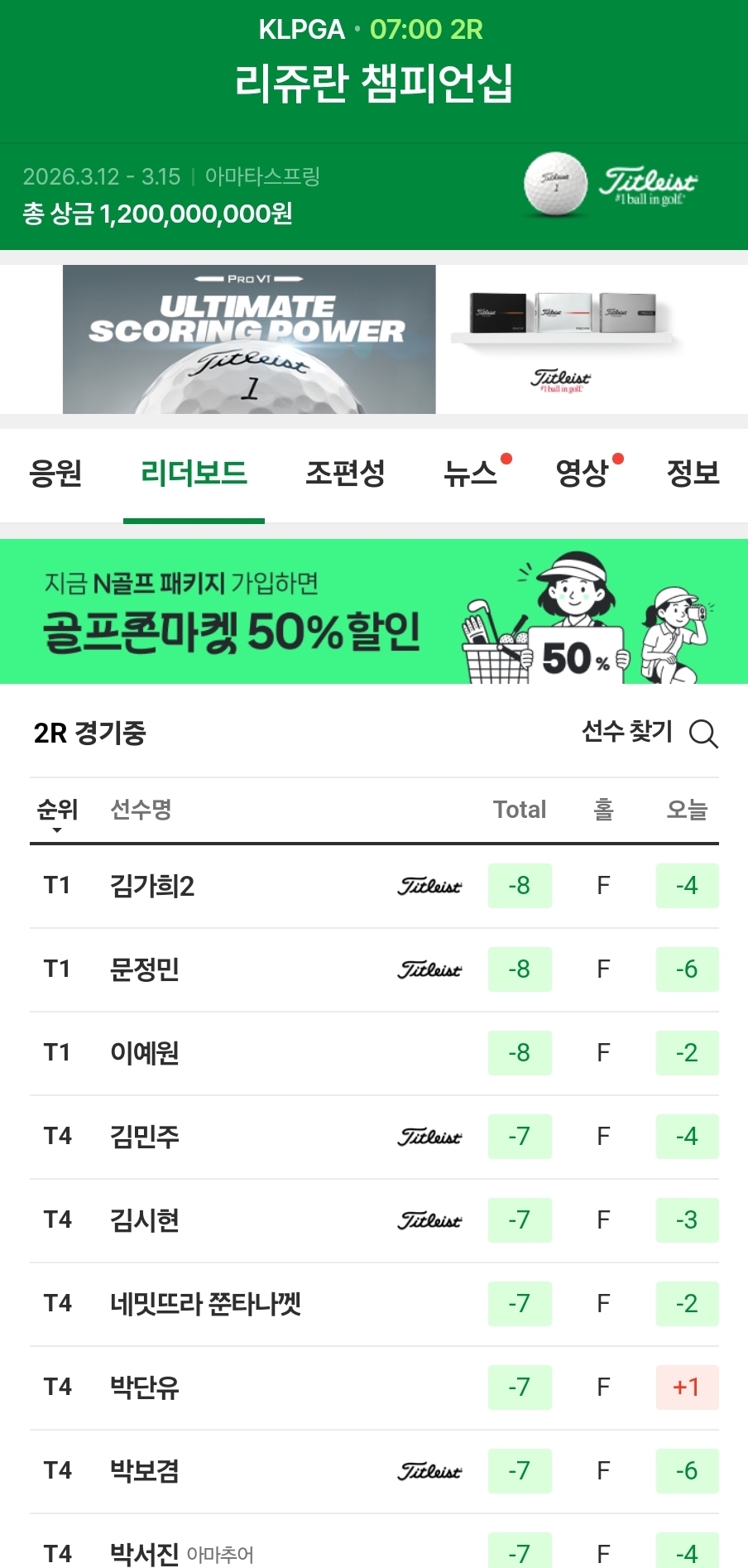 klpga 개막전 선두권이 치열합니다. 누가 우승할지 모르겠네요