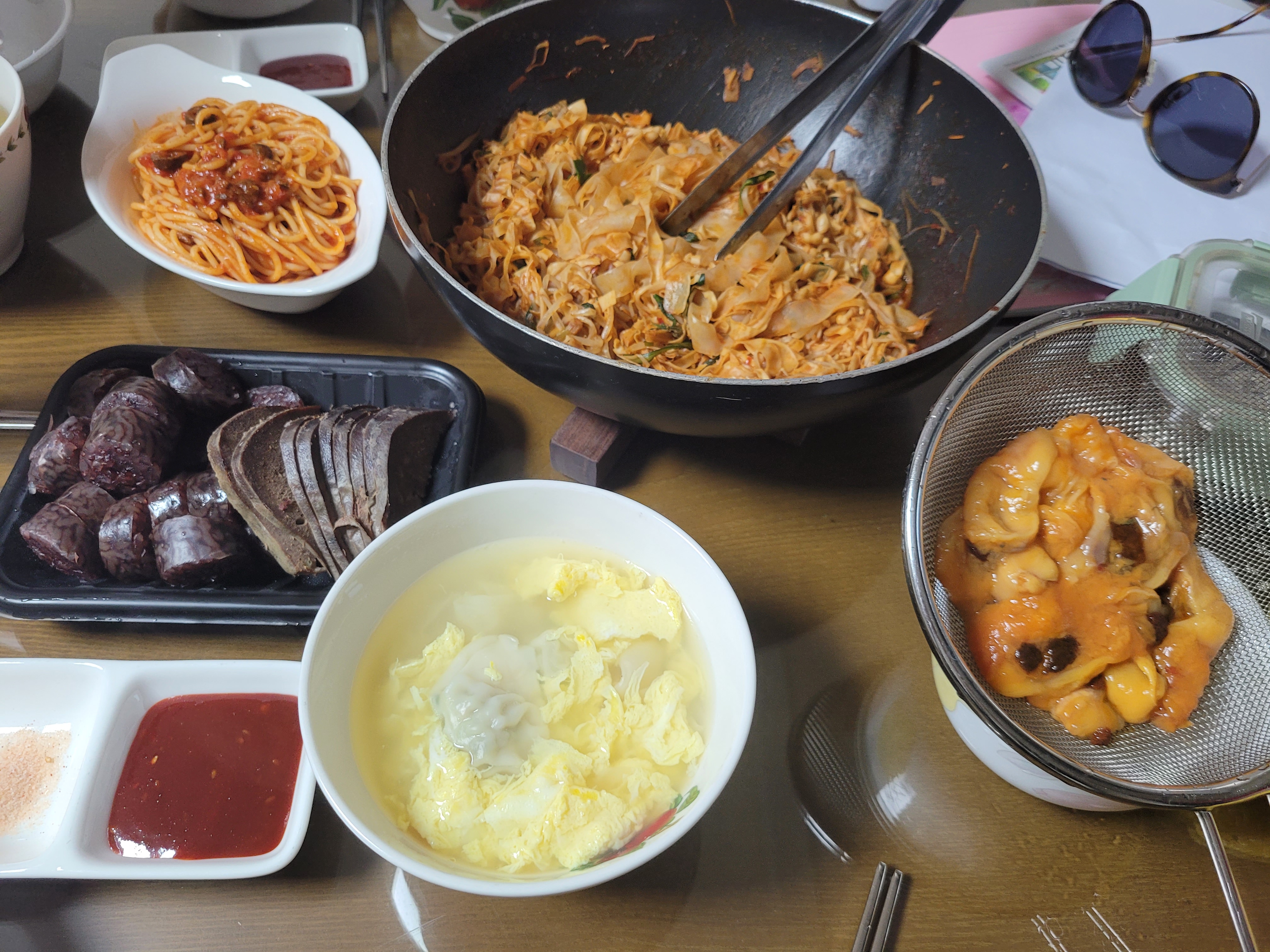 마눌 없는 틈에 딸이 이것저것 술안주 만들어주네요.ㅎㅎ 마라상궤, 새우완탕 멍게, 순대, 파스타까지