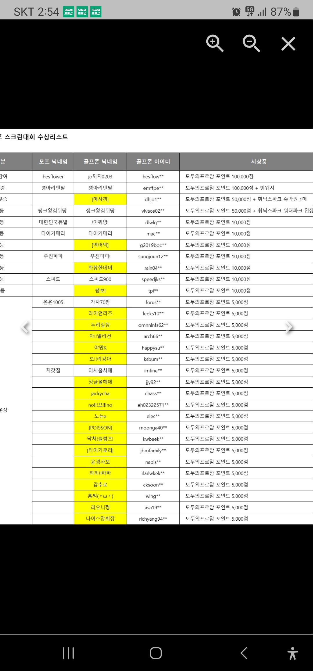 스크린 대회 포인트수상자