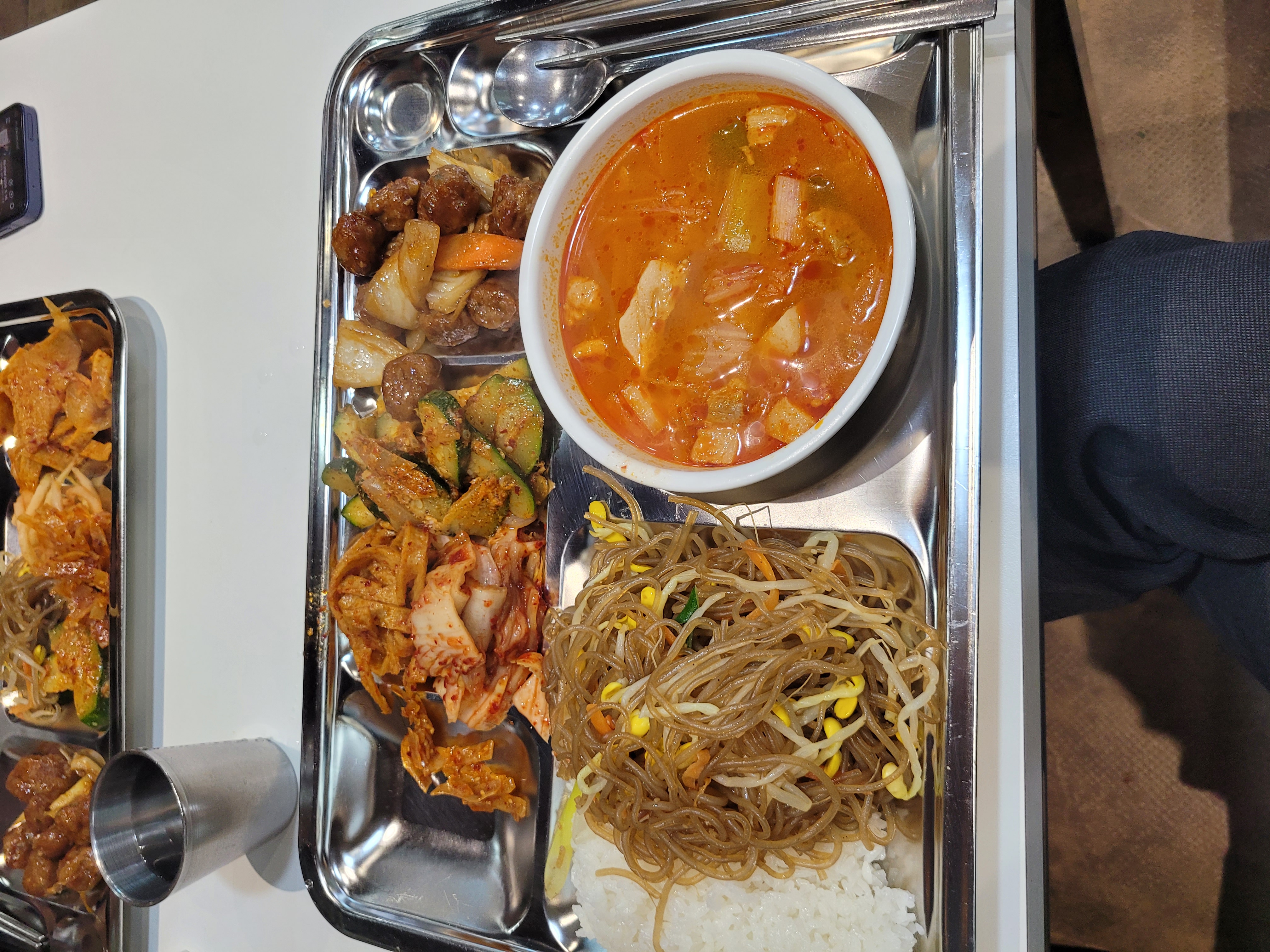 오늘메뉴는 목살김치찌게, 콩나물 잡채 입니다. 모두 맛점하세요