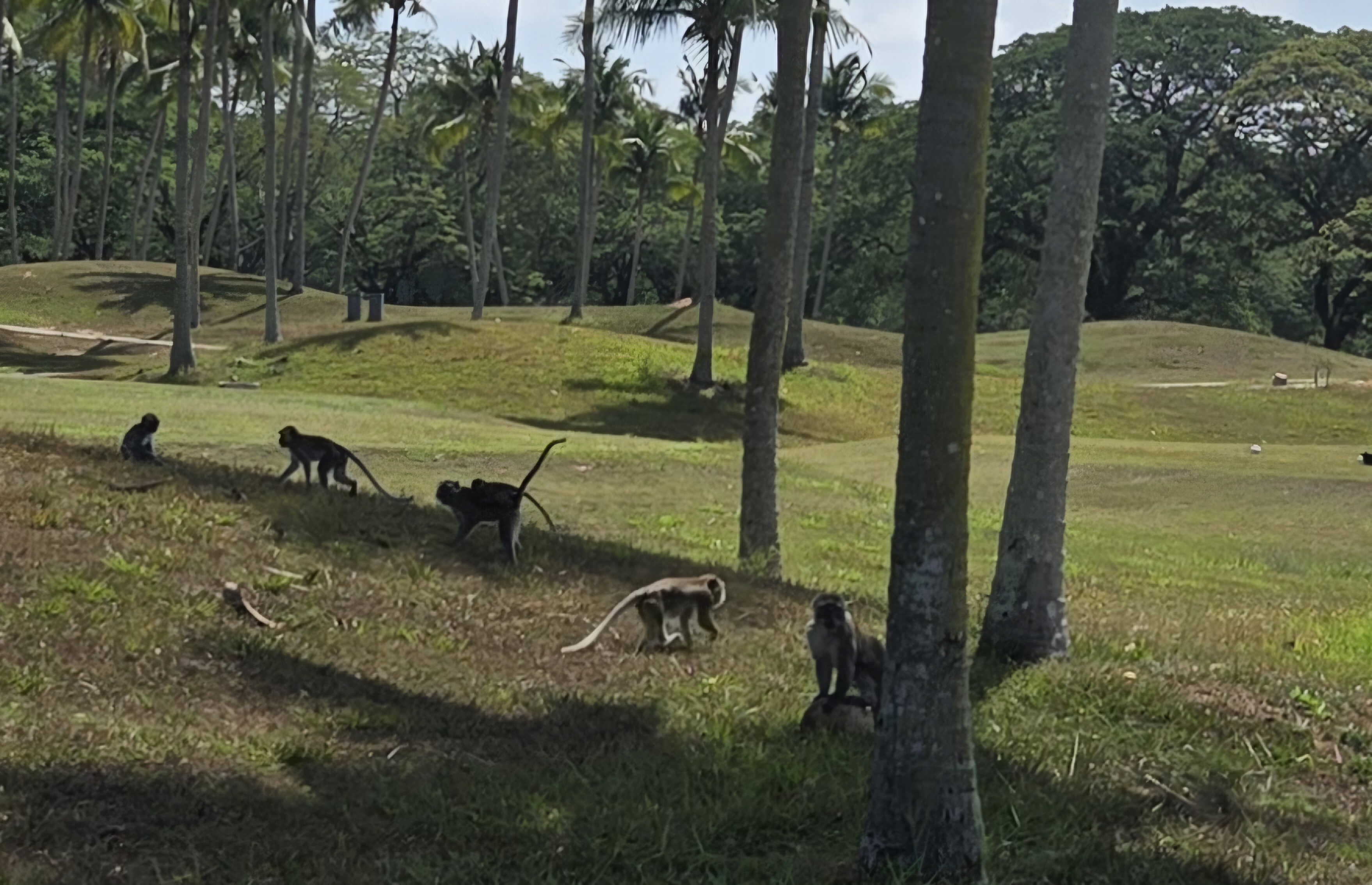 카트에 뭐 먹을거 있나 호시탐탐 노리고 있는 원숭이들~ 동반자가 티샷을 하거나 퍼트하는 동안 꼭 한명은 카트를 지키고 있어야 합니다