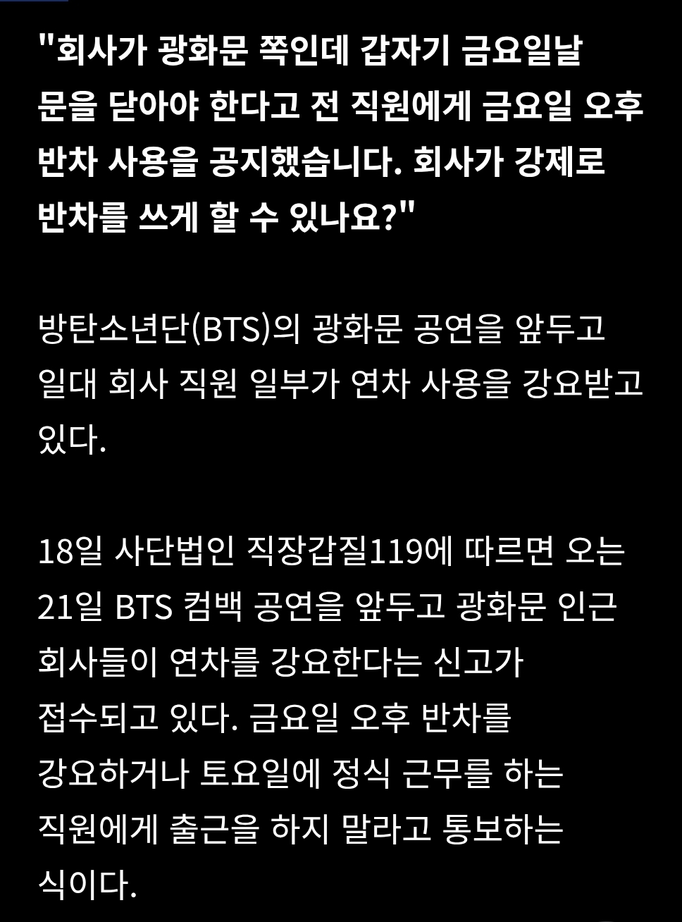 BTS 공연날 무조건 반차?