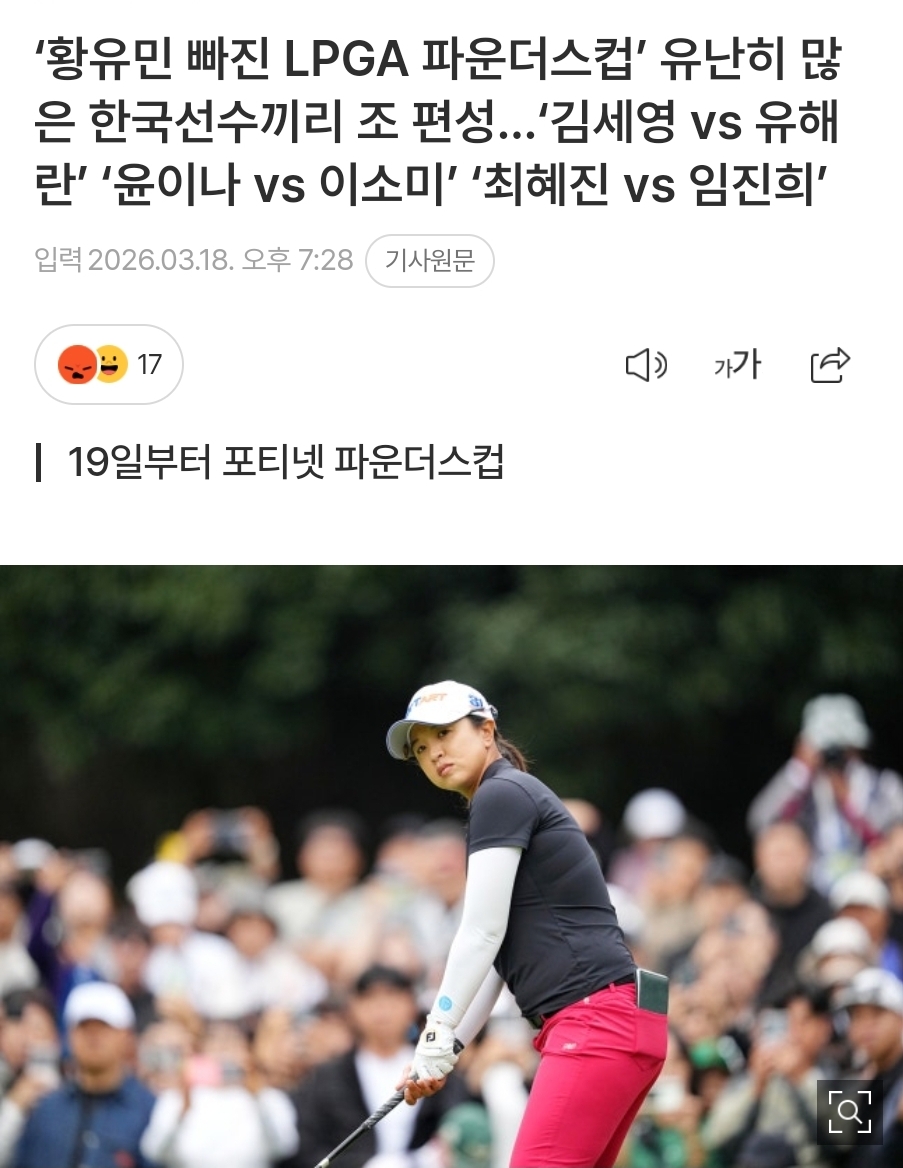 황유민이 빠지고도 21명의 한국선수가 참여합니다. 이번에는 최혜진 우승가나요? 응원합니다