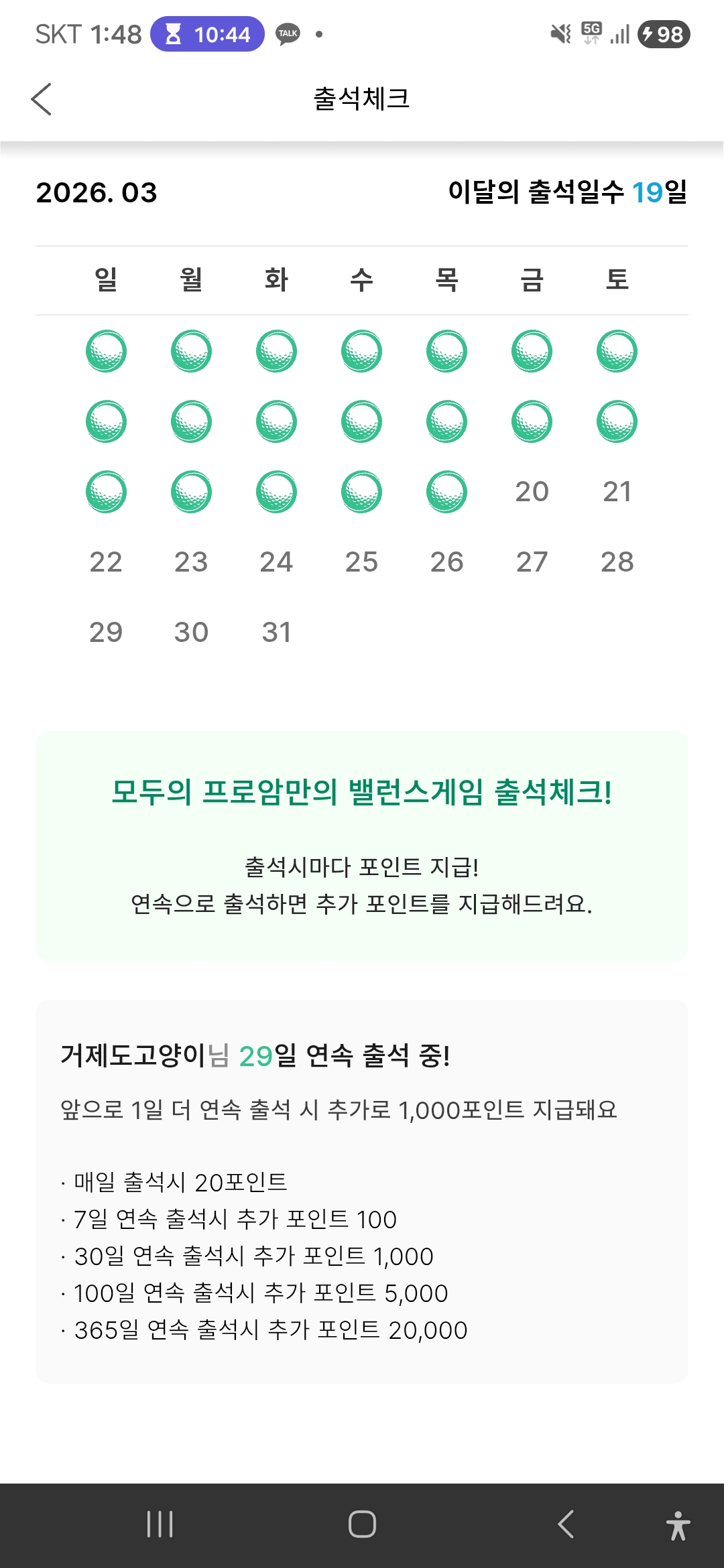 한달출석 채우네요~^^ 다들 얼마까지 해보셨나요? 설마 1년 채운분 있을까요?