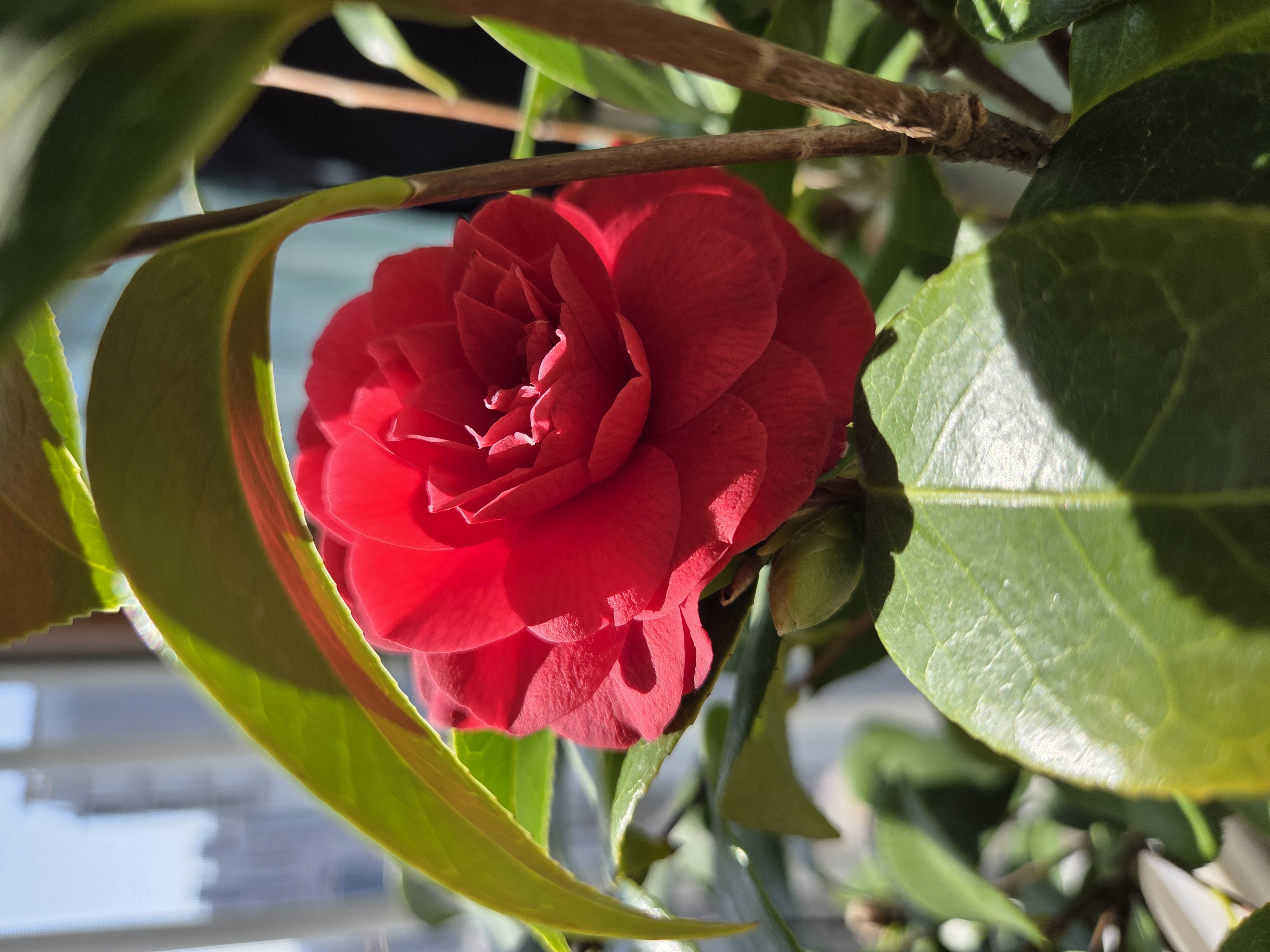 베란다에 동백꽃이 아직 피어 있습니다.