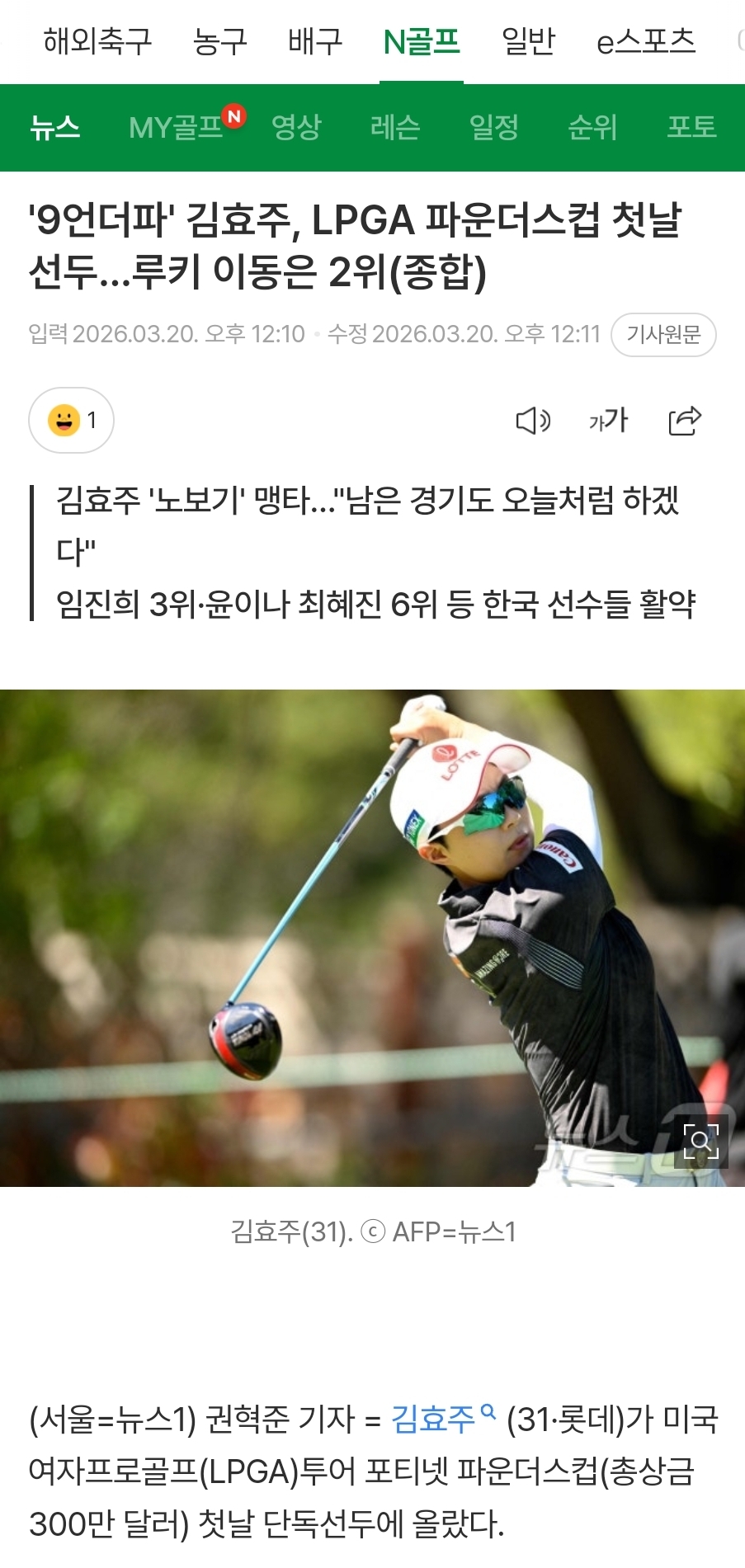 lpga 파운더스컵 1R 선두이네요 김효주 우승 응원합니다