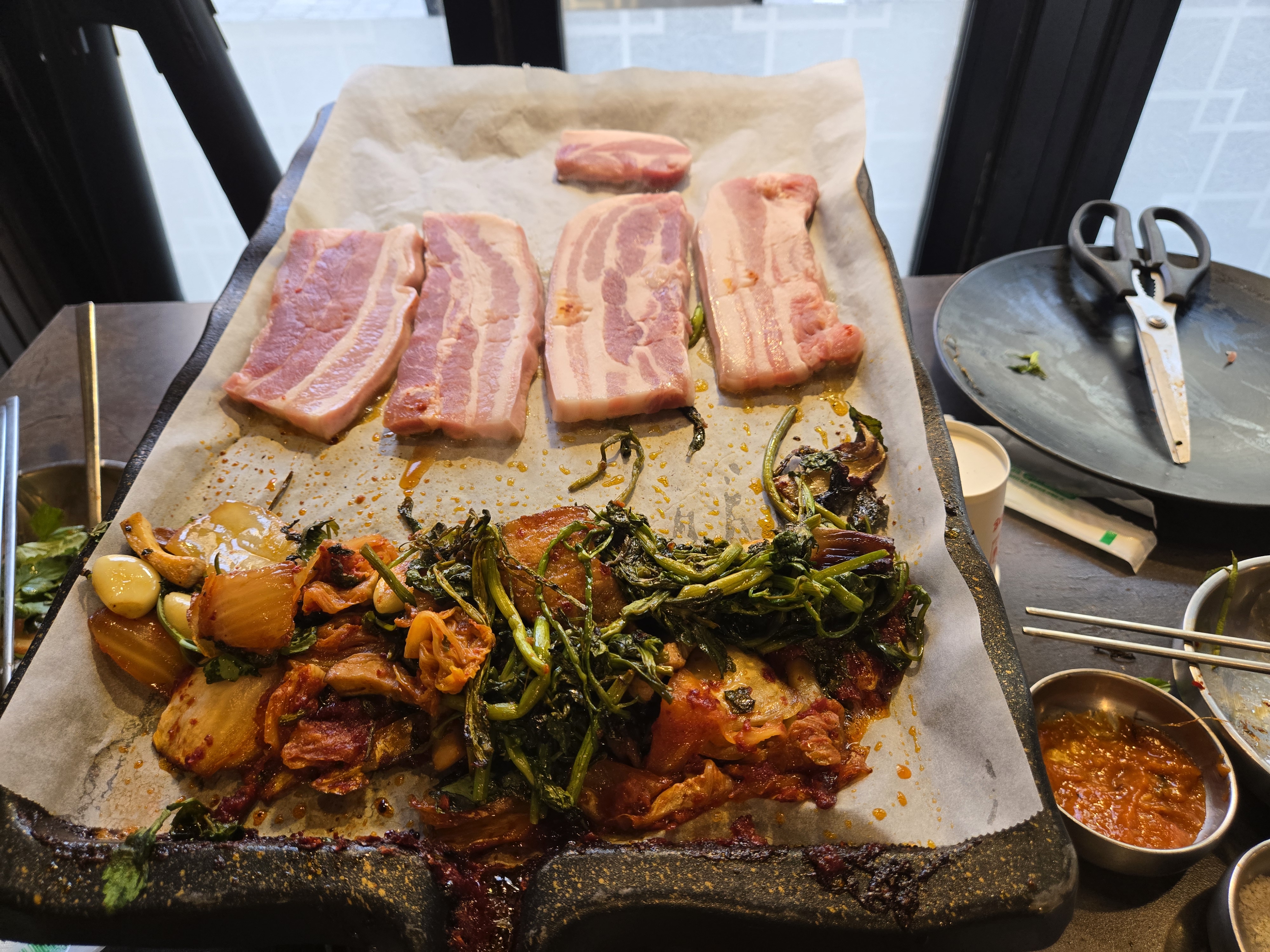 역시 라운딩 후 고기가 짱입니다. ^^ 미나리 삼겹살 폭풍 흡입중입니다. 즐거운 금요일 되세요.^^