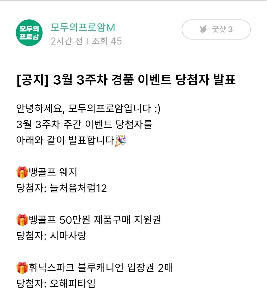 경품 이벤트 당첨자