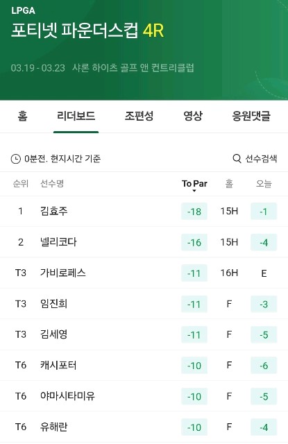 LPGA 파운더스컵 최종전 16번홀 진행중이네요