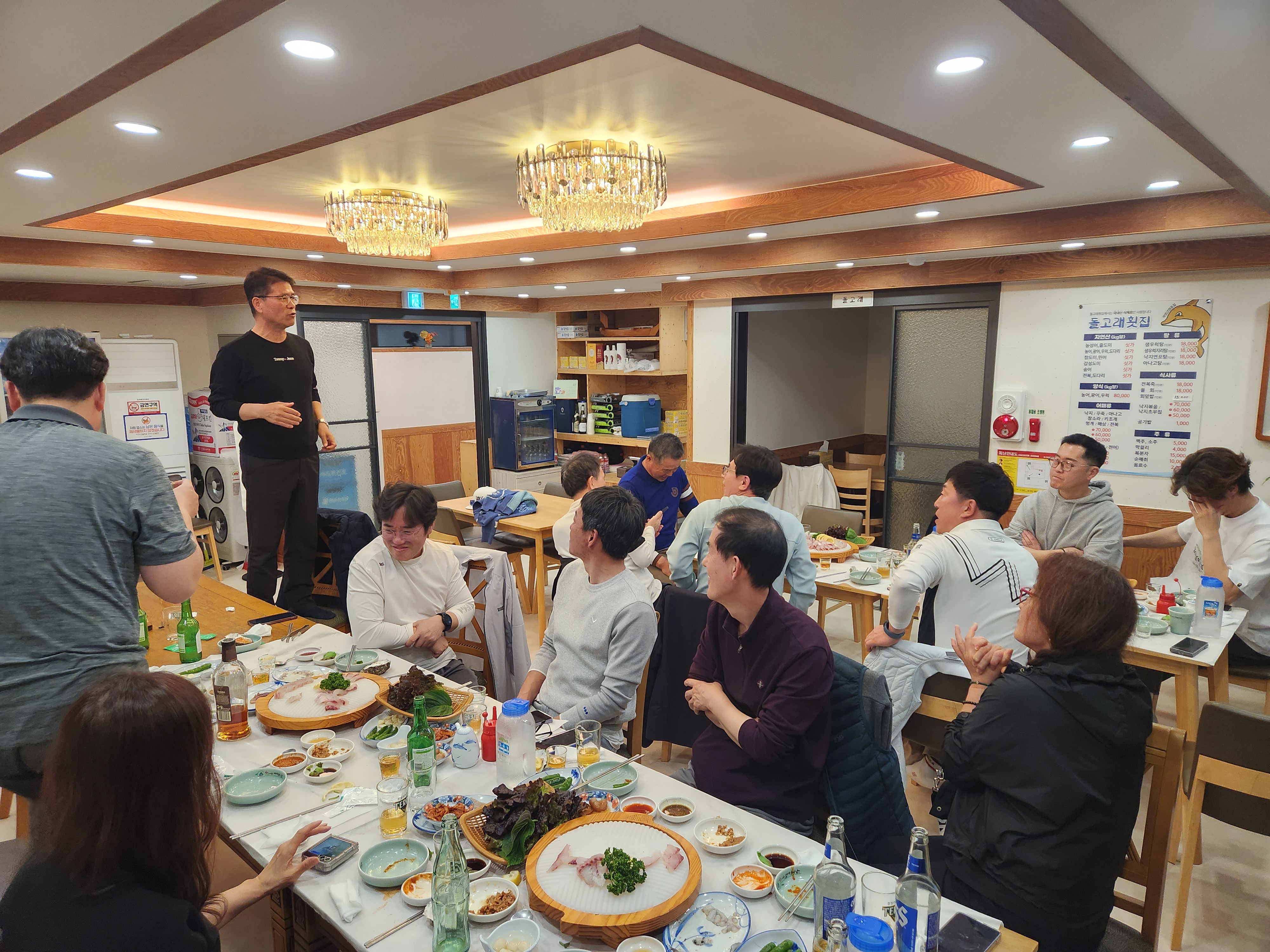 우연이 여러번 겹쳐 횟집에 프로암 회원 16분이 모여 모임중^^ 서경은 솔라시도 라운드 후 저녁 먹으러 개미용님 일행은 파인비치 라운드 후 저녁 먹으러 우연이 여러번 겹쳐 돌고래 횟집에서 모프 회원 16분이 모이게됐네요 모두의 프로암 벙개가 이곳에서^^
