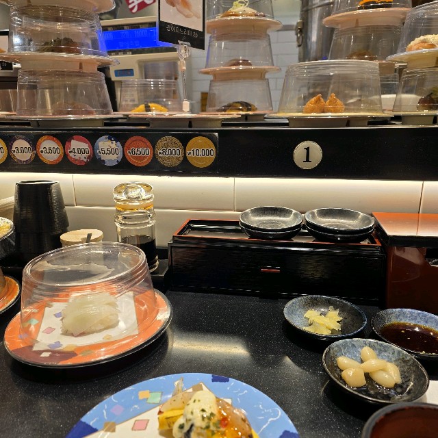 저는 딸과 함께 회전초밥 먹어요~~