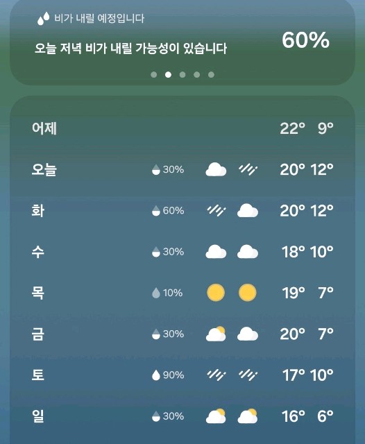 저녁 날씨 ☂️ 🌧 🌂