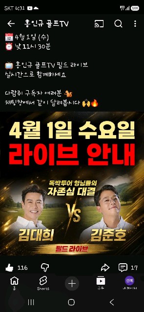 홍인규 골프티비 오늘 라이브 있어요~^^