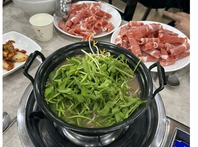 샤브칼국수와 김치겉절이 맛이