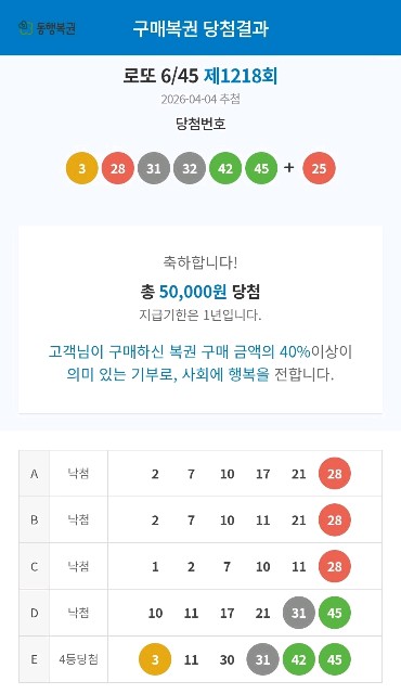 설마 설마 설마 했는데 역시 ^^이번주 로또 번호 2개만 더 맞았어도 1등인데 아쉽네요.4등이라도 기분은 너무 좋긴하네요. ^^조상님 감사합니다. 🙇♀️ 🙇♀️ 다음에는 1등 부탁드립니다. 😀😃😄