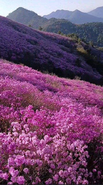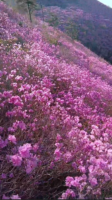 창원에는 벚꽃이 지면 진달래 축제가 열립니다창원 천주산에는 온천지가 붉게 물든 진달래를구경할 수 있습니다놀러오세요지금 진달래가 분홍색으로 활짝 피었네요