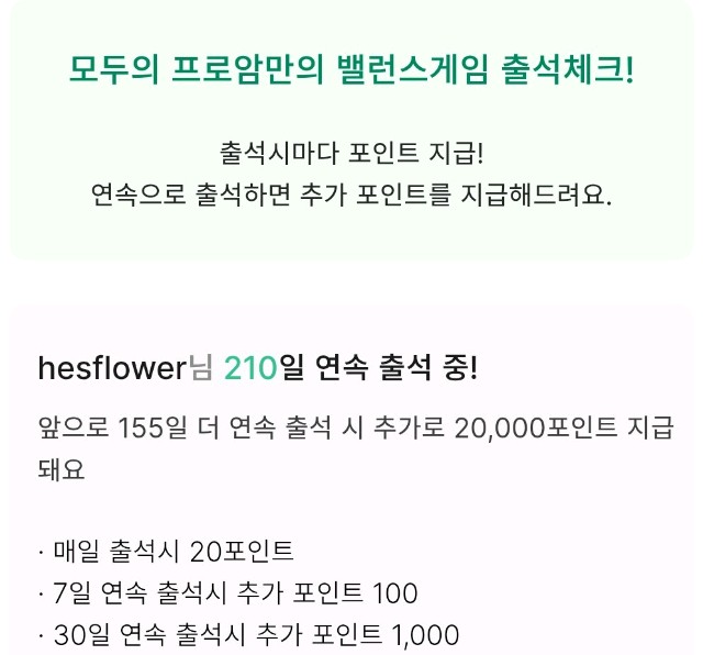 210일 출석포인트