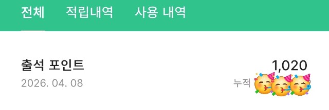 연속30일이라 1000포인트가 들어왔어여
