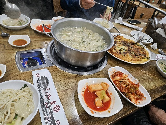 외근중 칼국수,해물파전으로