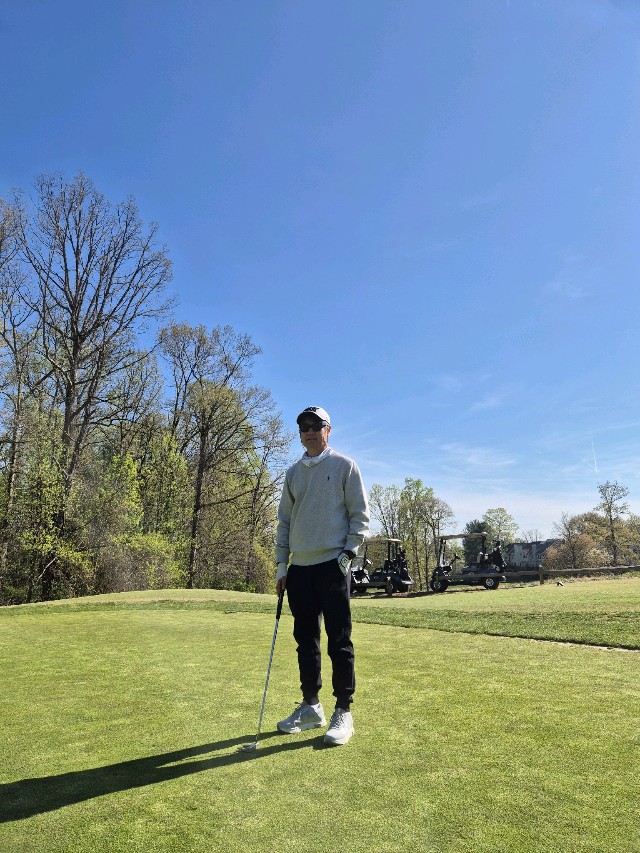 날씨는 바람불어 춥고 9도내외인데매제가 급 란딩가자고~얇은바지와 반팔 골프복만 갖고 온지라~트레이닝복 바지에웻셔츠 입어도 뭐라 안한다고~그린 상하지 않게 골프화만 신으면~😁😁따숩고 편하게 입고 잘쳣네요..ㅋ