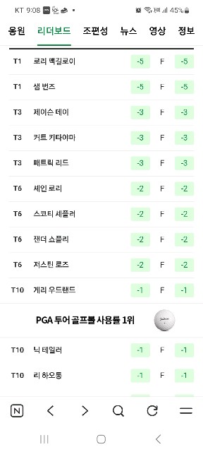 맥길로이. 셰플러 역시 우승후보 답네요. 우리 선수들도 화이팅 응원합니다