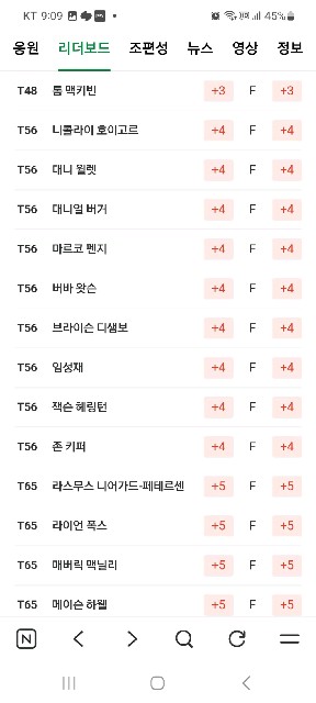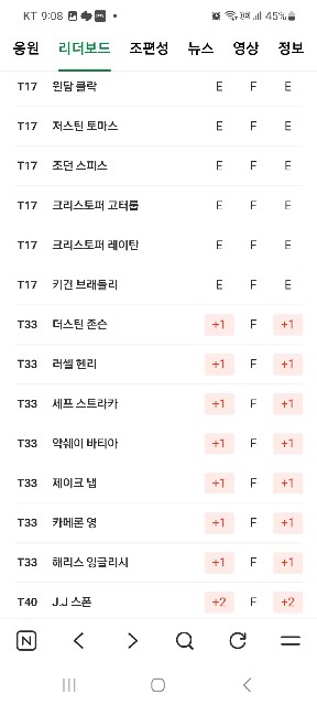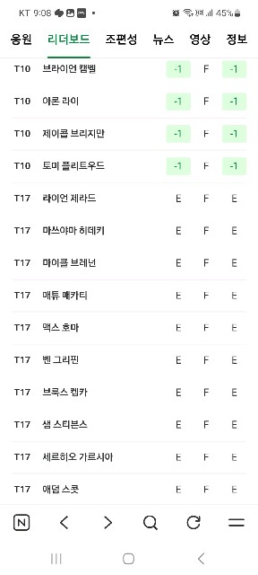 ***스 토너먼트 1R 리더보드