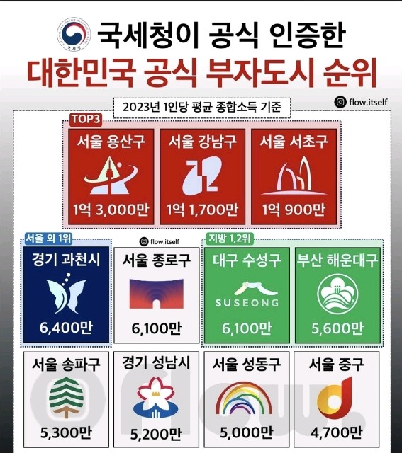 국세청이 공식 인증한 부자도시