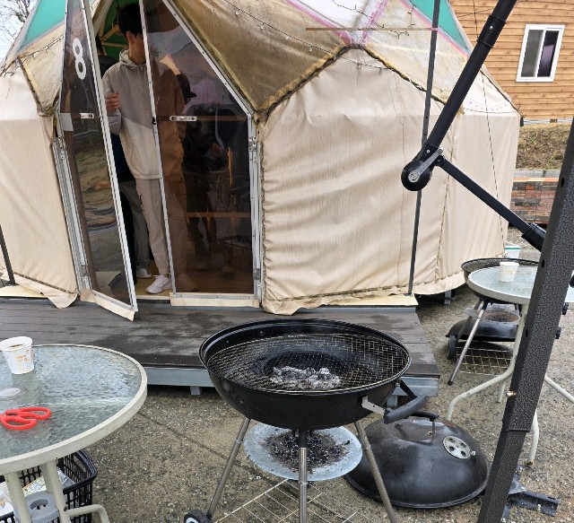 회사 야유회 캠프바베큐장 아점 먹으러 왔습니다