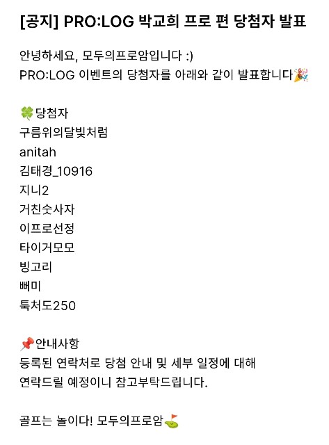 PRO:LOG 박교희 프로 당첨자