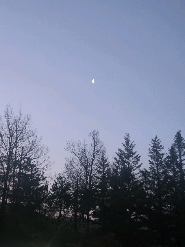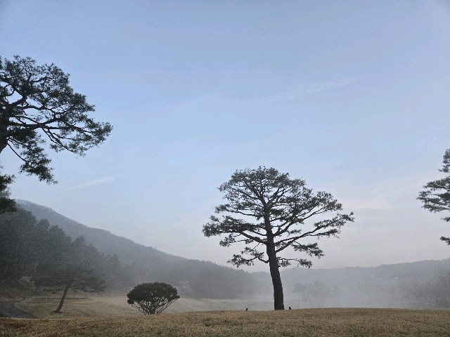 씻고 조용히 아침 산책을 하였습니다. 초승달과 물안개가 낀 오크밸리의 아침 전경이 너무 이쁘네요^^
